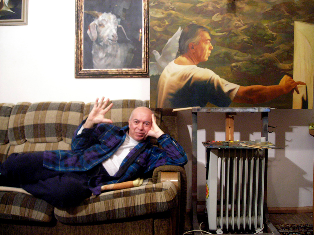 He implements a variety of means – from conventional to documentaries – in order to enhance the impact of his figurative paintings. The artist often brings into the paintings footages of documentary material, film and photo chronicles. However, the documentary material loses its original essence and becomes an object of art. Tactfully using this material, Hovsepian produces the desired effect: a comparison of the two systems appeals to the psychological perception of the world of the modern man. This refers to the paintings “At the photo exhibition,” The Artist and the Time,” “The Race of the World,” ” Veto.” Connecting events separated by time, Hovsepian clarifies the essence of his artistic position through their juxtaposition. Hovsepian’s works are diverse in their themes and genres. The artist continuously challenges and tests himself , trying to perfect his style and themes.